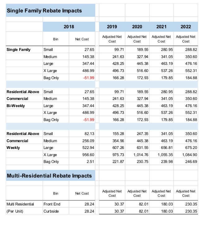 City of Toronto table - draft plan for eliminating garbage bin rebates